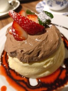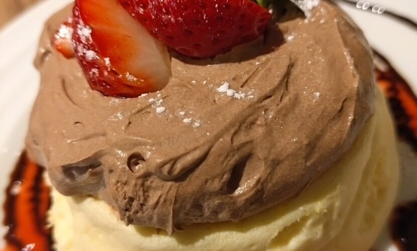 - 苺とチョコレートクリームのリコッタパンケーキ