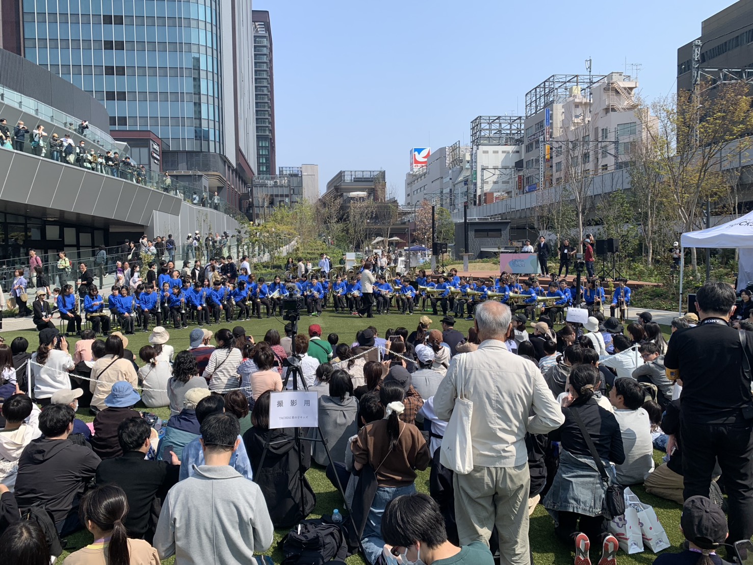 「品川区立立会小学校」**の児童たちがセレモニーの主役として登場!日頃の練習の成果を披露する元気いっぱいの演奏やパフォーマンスで、新しい街の門出を華やかに彩りました。子供たちの誇らしげな笑顔に、会場からは温かい拍手が送られました。