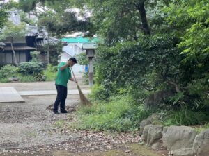 竹ボウキでの掃き掃除も捗り、前回に続いて境内の主に左側を中心にお掃除させて頂きましたが、