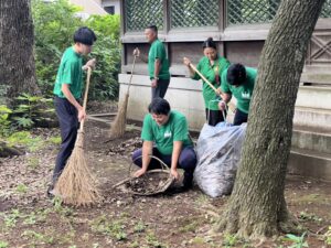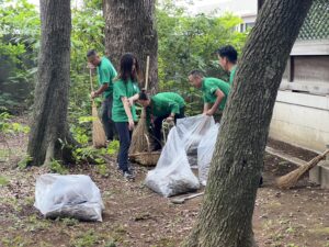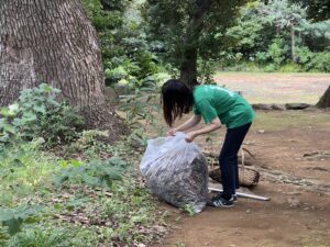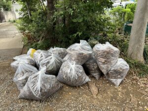 落ち葉も非常に多く、スタッフ9名で、70lのゴミ袋に何と12袋ゴミを回収