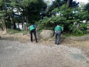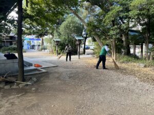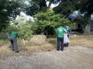 落ち葉の掃き掃除やごみ拾いなどを参加メンバーで丁寧に進めました。