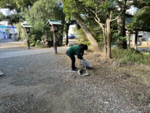 今回の清掃活動では、境内に積もっていた落ち葉を中心に