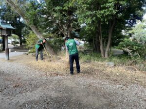 境内では、神殿に向かって左側エリアを中心に清掃を行い、