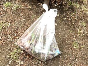 当日は竹ぼうきを使い、園内を隅々まで丁寧に掃き掃除を行い、確認できたゴミはすべて回収いたしました。