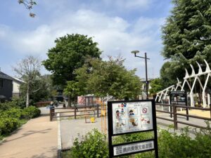 今回は「大井庚塚児童遊園」にて、朝9:30から約40分間の活動。